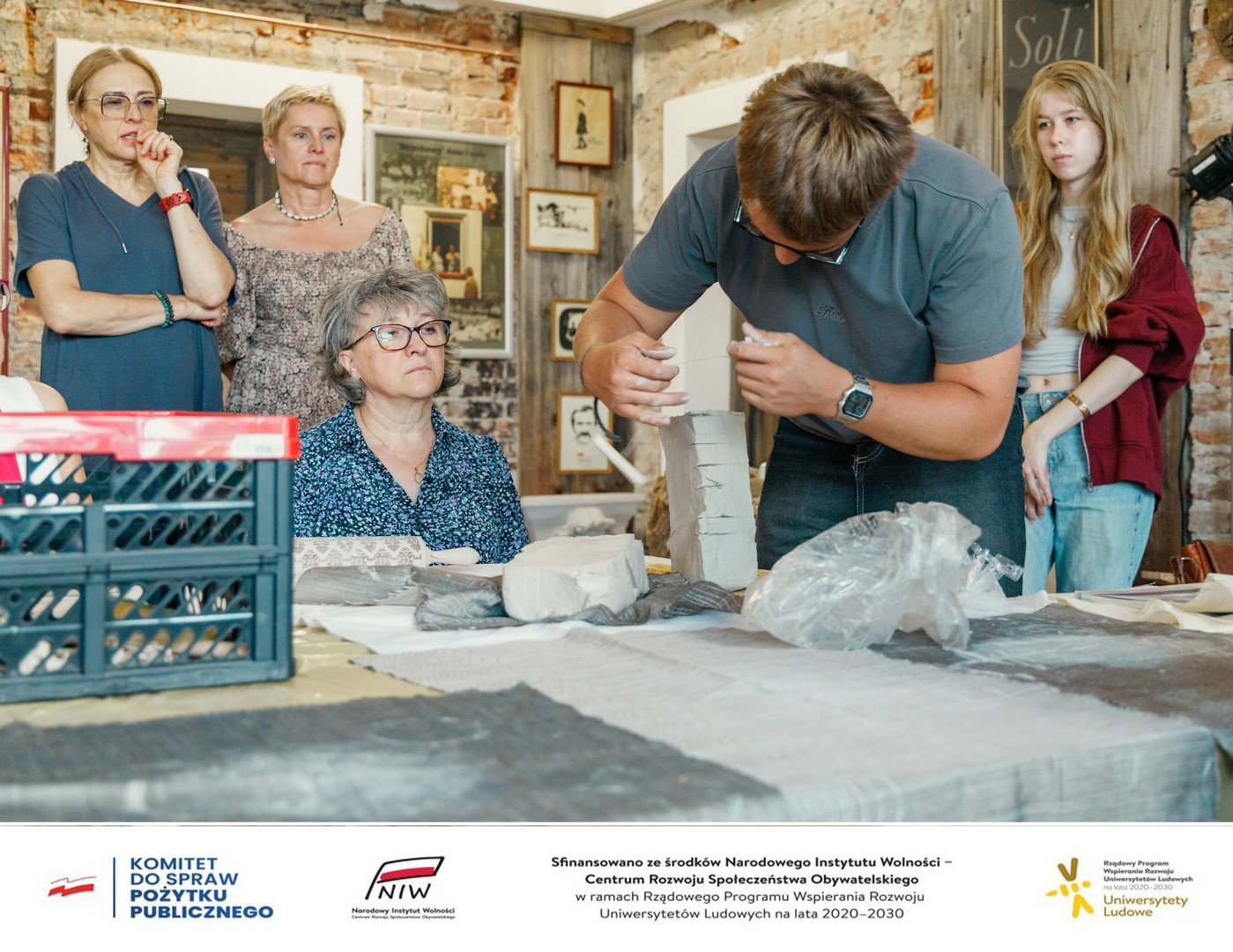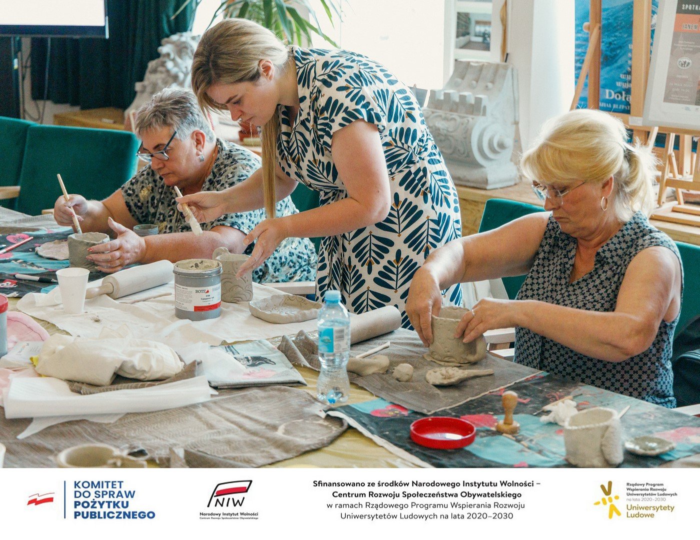 Po zakończeniu prelekcji uczestnicy mieli wyjątkową okazję pogłębić swoją wiedzę i umiejętności w zakresie ręcznego lepienia, zdobienia oraz wykańczania ceramiki, pod czujnym okiem doświadczonej prowadzącej. Atmosfera podczas warsztatów była niezwykle przyjazna i inspirująca, co sprzyjało pełnej swobody twórczej ekspresji. Każdy z uczestników mógł wyrazić własne pomysły, eksperymentować z różnymi technikami i odkrywać ukryte talenty artystyczne. Dzięki temu powstały unikalne, osobiste dzieła, które będą miały swoją ostateczną formę po wypaleniu. Efekty tych prac poznamy po tym, jak pani Maria Mazur Krysztanowska, doświadczona ceramiczka, wypali wyroby ceramiczne w specjalistycznym piecu. To właśnie wtedy ujrzymy pełnię możliwości i kreatywności uczestników, a ich twórczość nabierze ostatecznego kształtu i blasku.