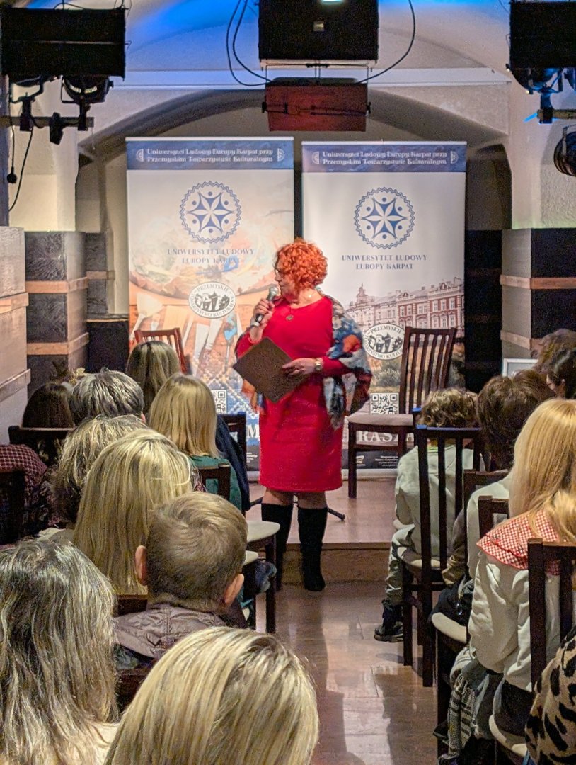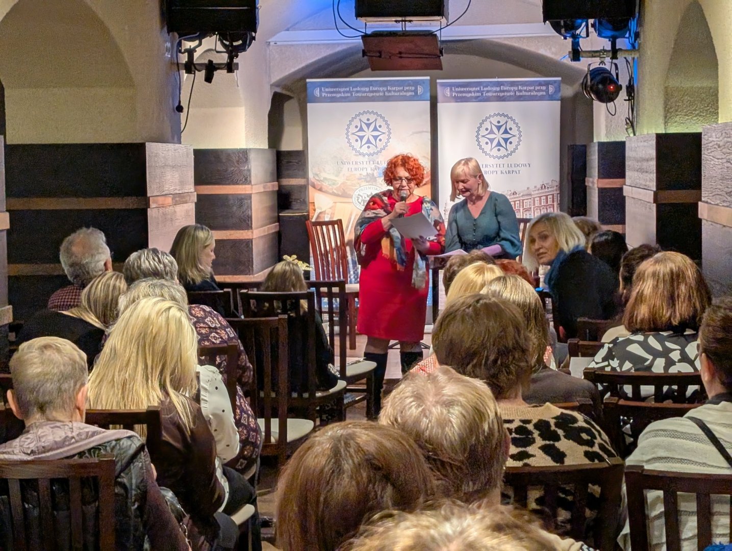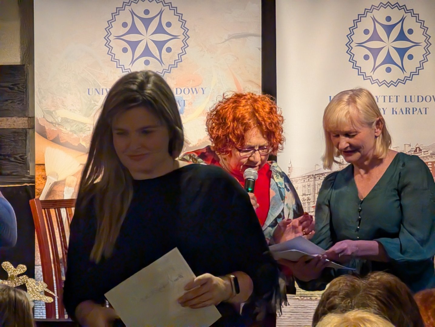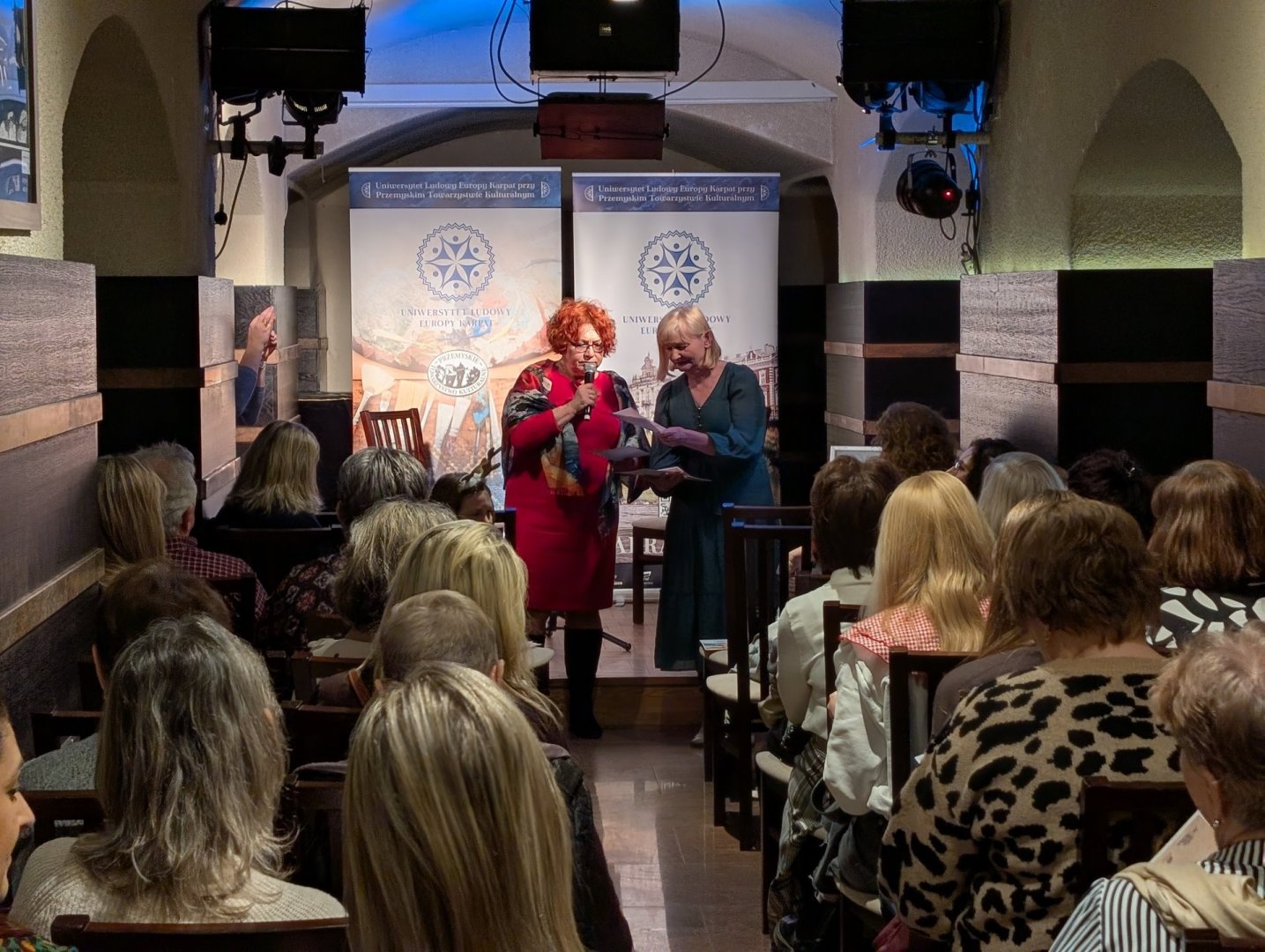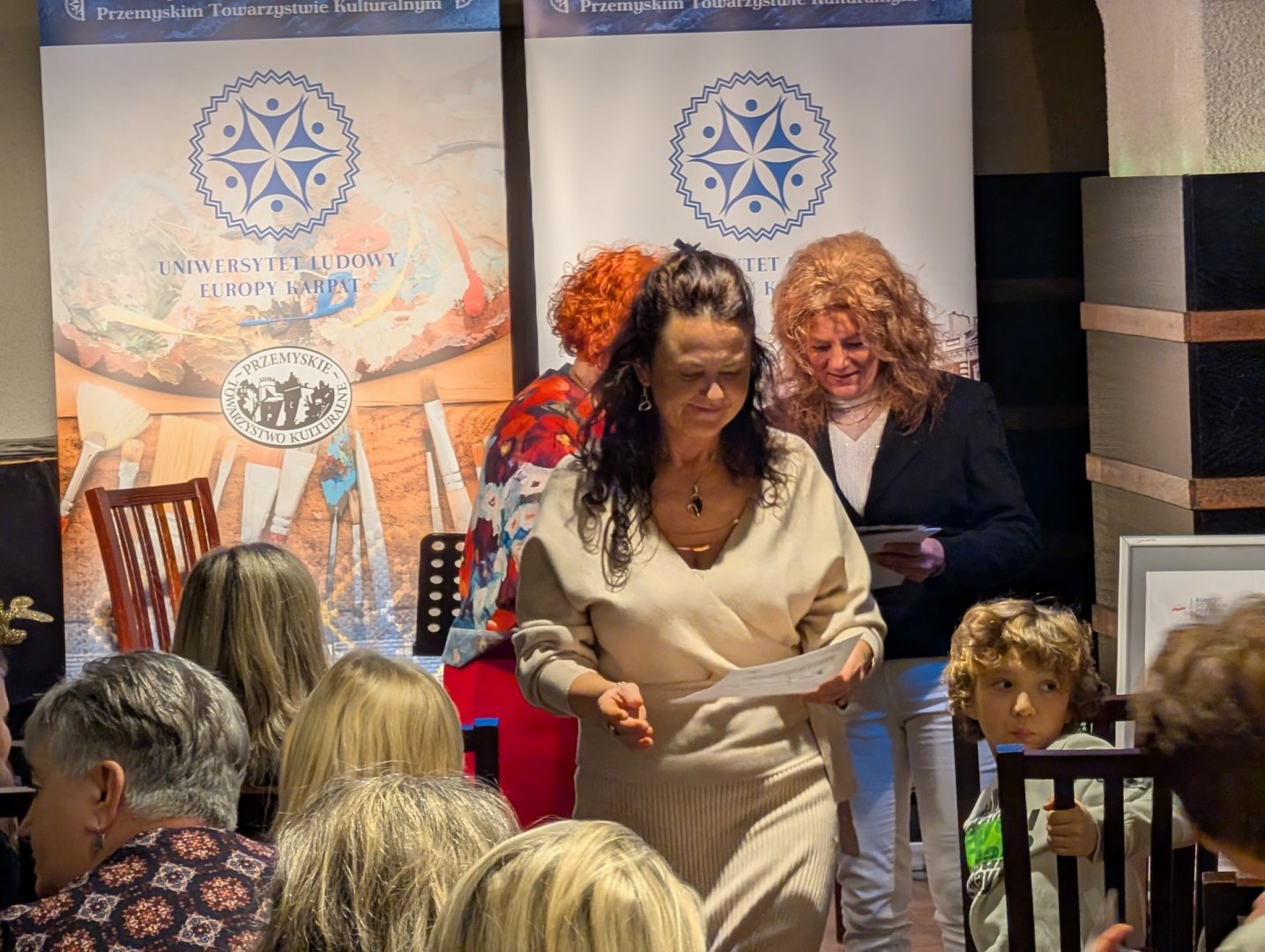 6 grudnia 2025 roku w świątecznej atmosferze Mikołajek, w Klubie „Piwnice” Centrum Kulturalnego w Przemyślu odbyło się uroczyste zakończenie dwóch długoterminowych kursów prowadzonych przez Uniwersytet Ludowy Europy Karpat: kursu plastycznego oraz kursu rękodzieła artystycznego. Spotkaniu towarzyszyła wystawa prac uczestników, którzy przez kilka miesięcy rozwijali swoje umiejętności pod okiem doświadczonych instruktorów. W przestrzeni klubu zaprezentowano ceramikę, kompozycje z bibuły, hafty, malowanie na tkaninach i szkle, a także liczne prace powstałe podczas zajęć akwarelowych i plenerowych. Całość ukazywała różnorodność technik i indywidualność twórców, a także ogromne znaczenie, jakie ma pielęgnowanie tradycji i rozwijanie kreatywności w lokalnej społeczności.