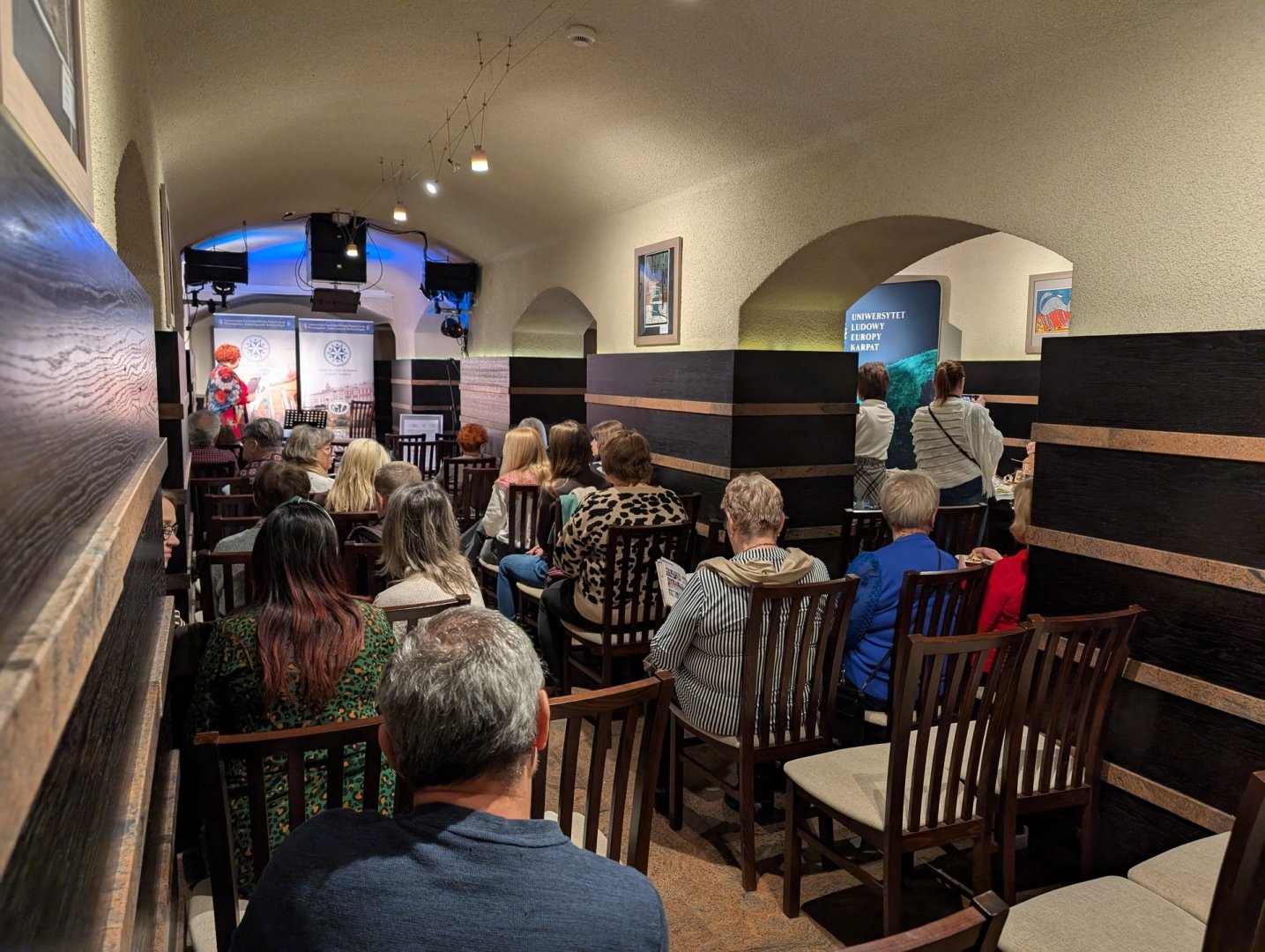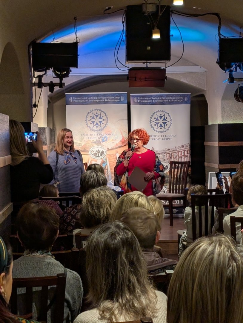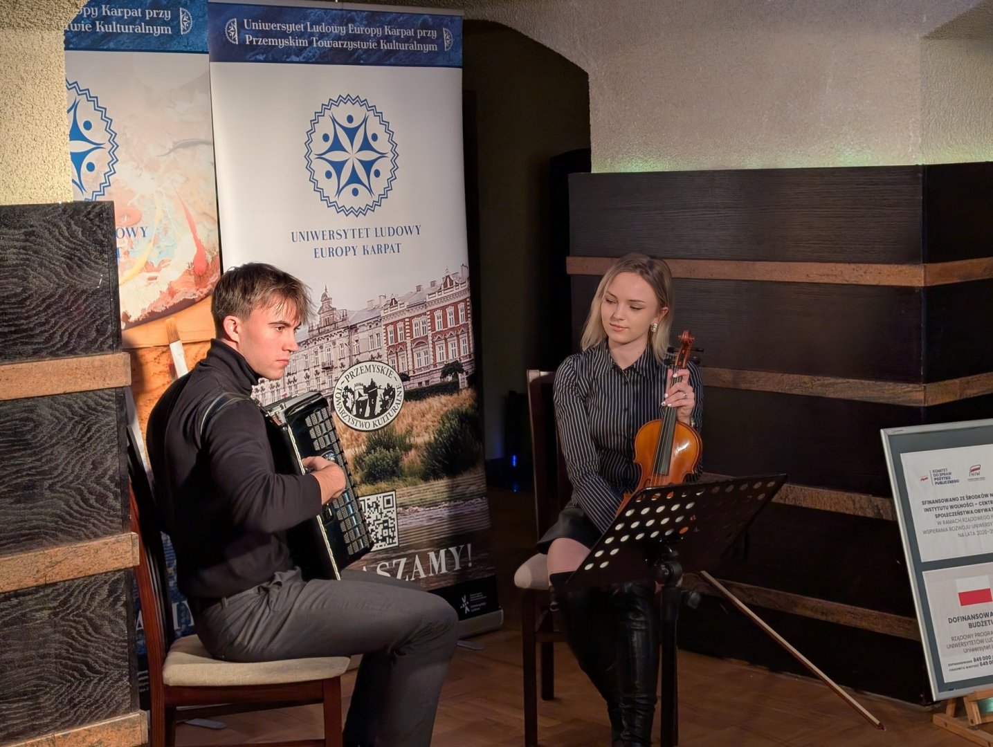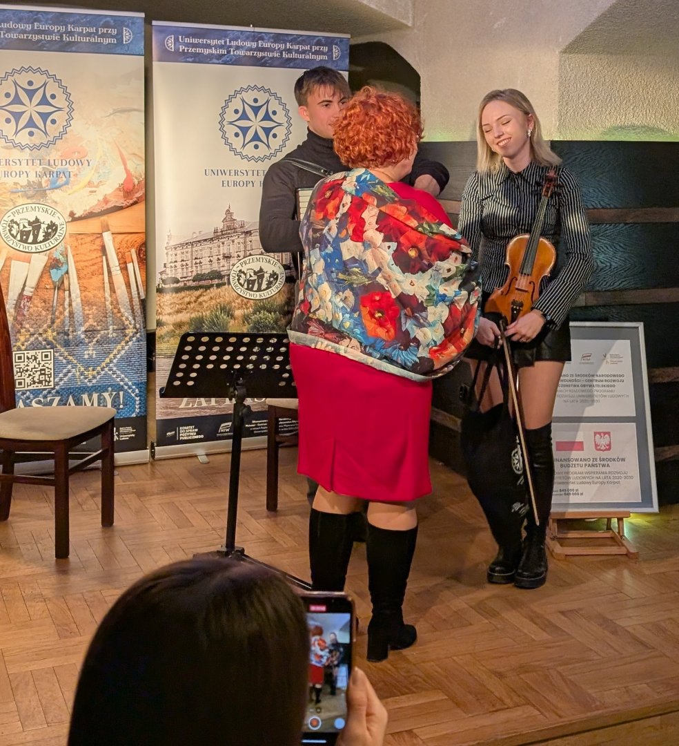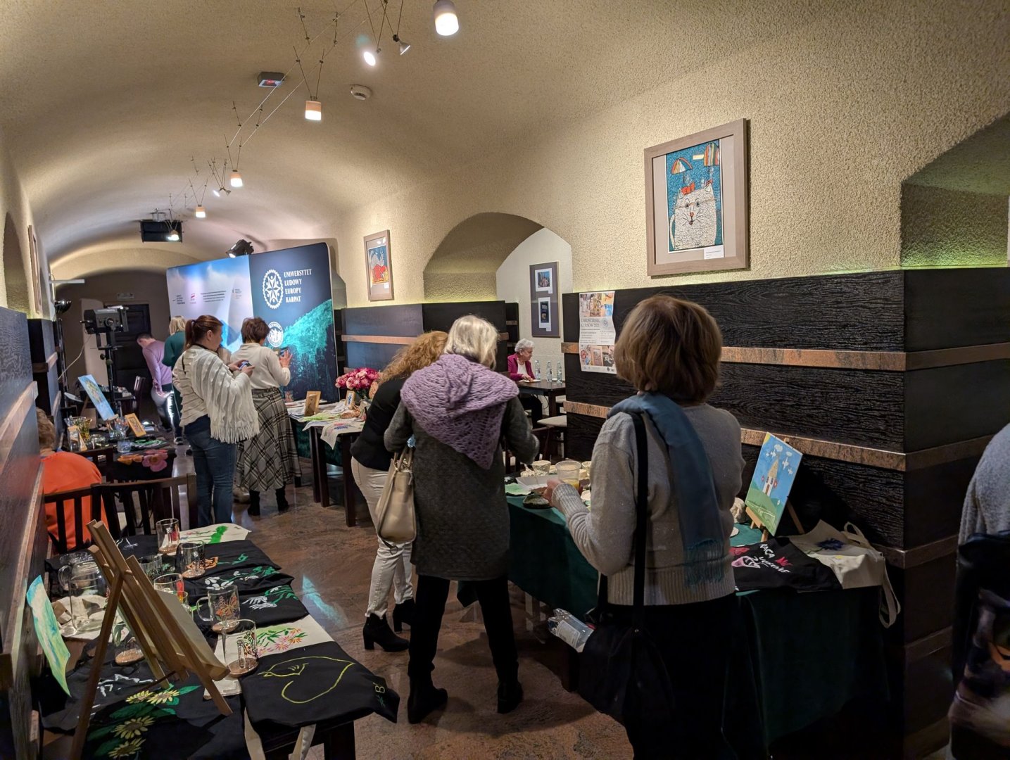 6 grudnia 2025 roku w świątecznej atmosferze Mikołajek, w Klubie „Piwnice” Centrum Kulturalnego w Przemyślu odbyło się uroczyste zakończenie dwóch długoterminowych kursów prowadzonych przez Uniwersytet Ludowy Europy Karpat: kursu plastycznego oraz kursu rękodzieła artystycznego. Spotkaniu towarzyszyła wystawa prac uczestników, którzy przez kilka miesięcy rozwijali swoje umiejętności pod okiem doświadczonych instruktorów. W przestrzeni klubu zaprezentowano ceramikę, kompozycje z bibuły, hafty, malowanie na tkaninach i szkle, a także liczne prace powstałe podczas zajęć akwarelowych i plenerowych. Całość ukazywała różnorodność technik i indywidualność twórców, a także ogromne znaczenie, jakie ma pielęgnowanie tradycji i rozwijanie kreatywności w lokalnej społeczności.