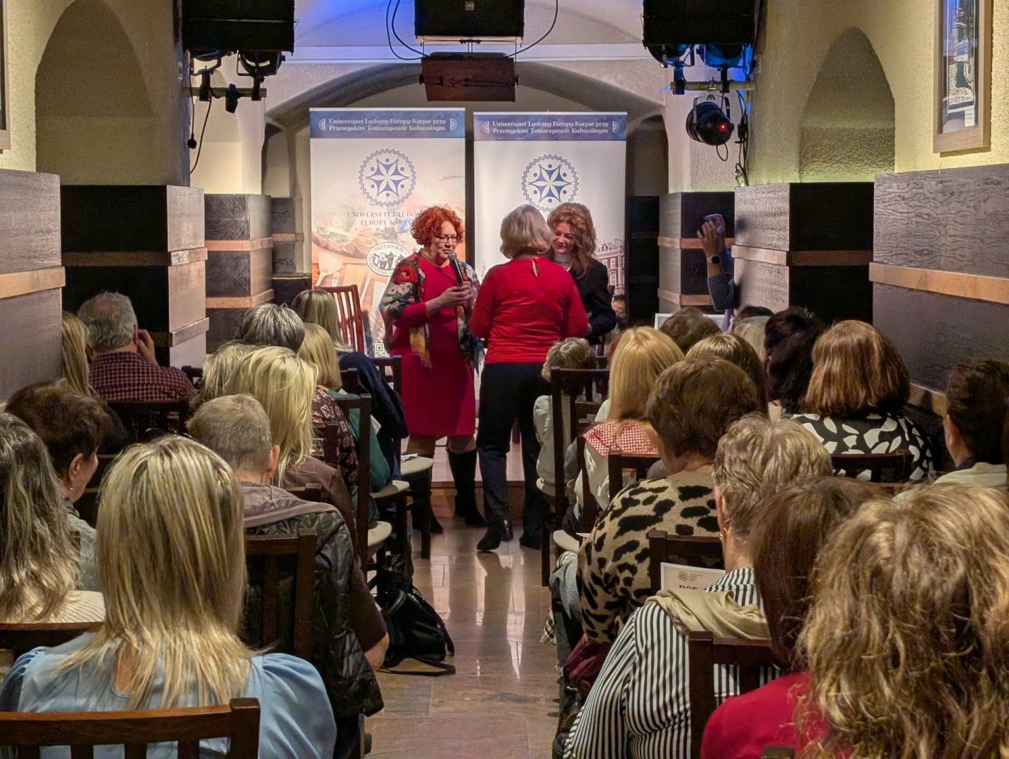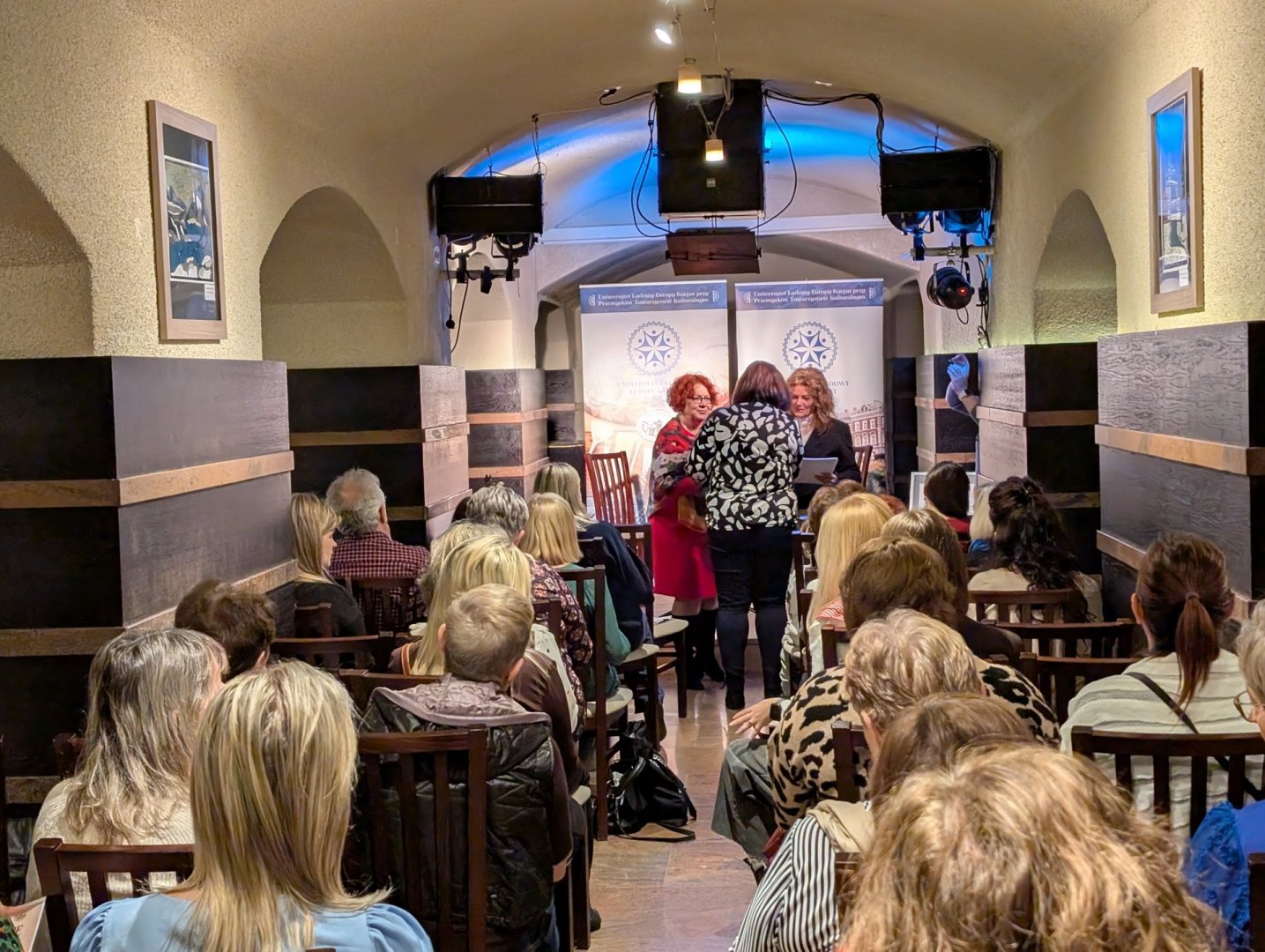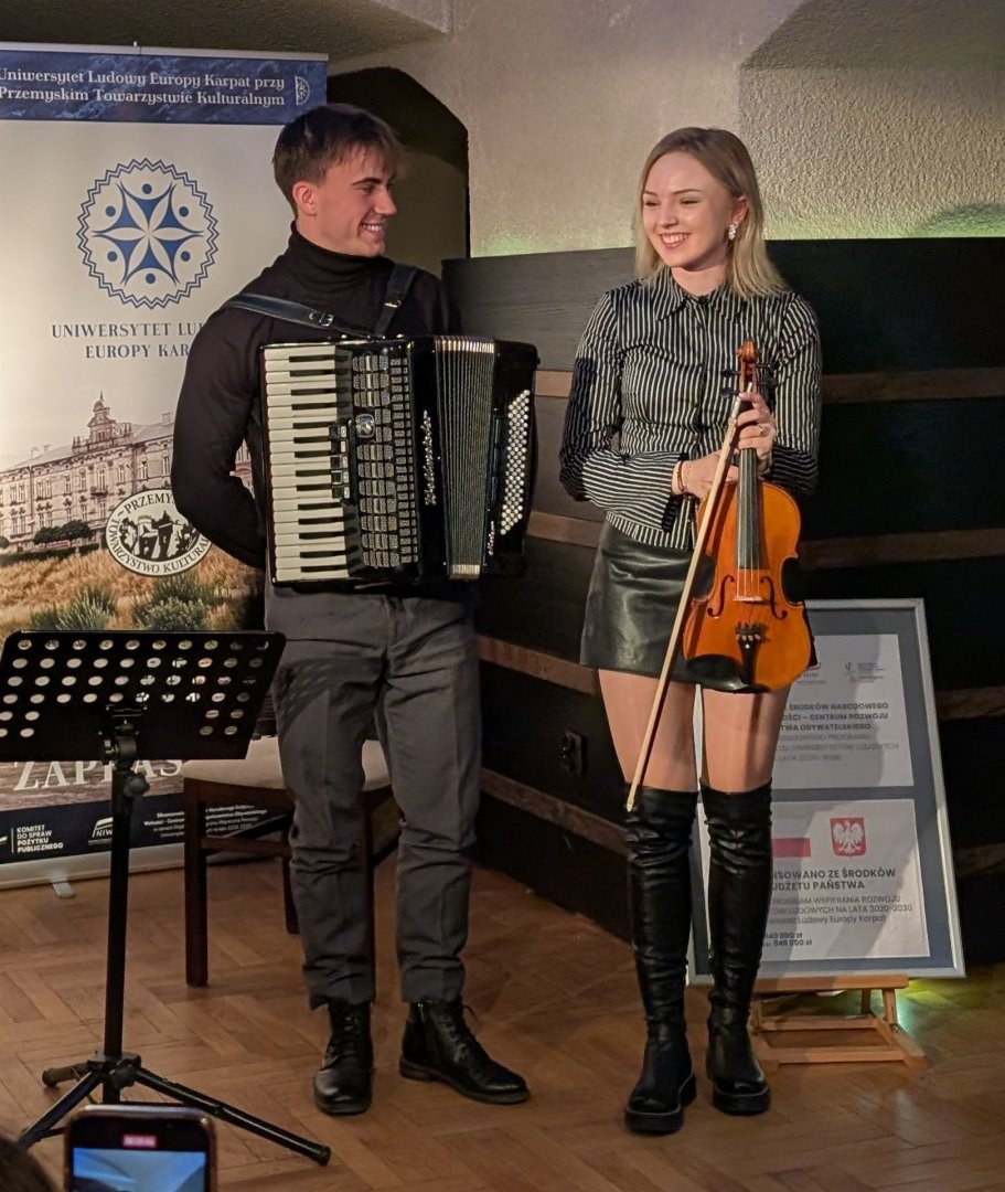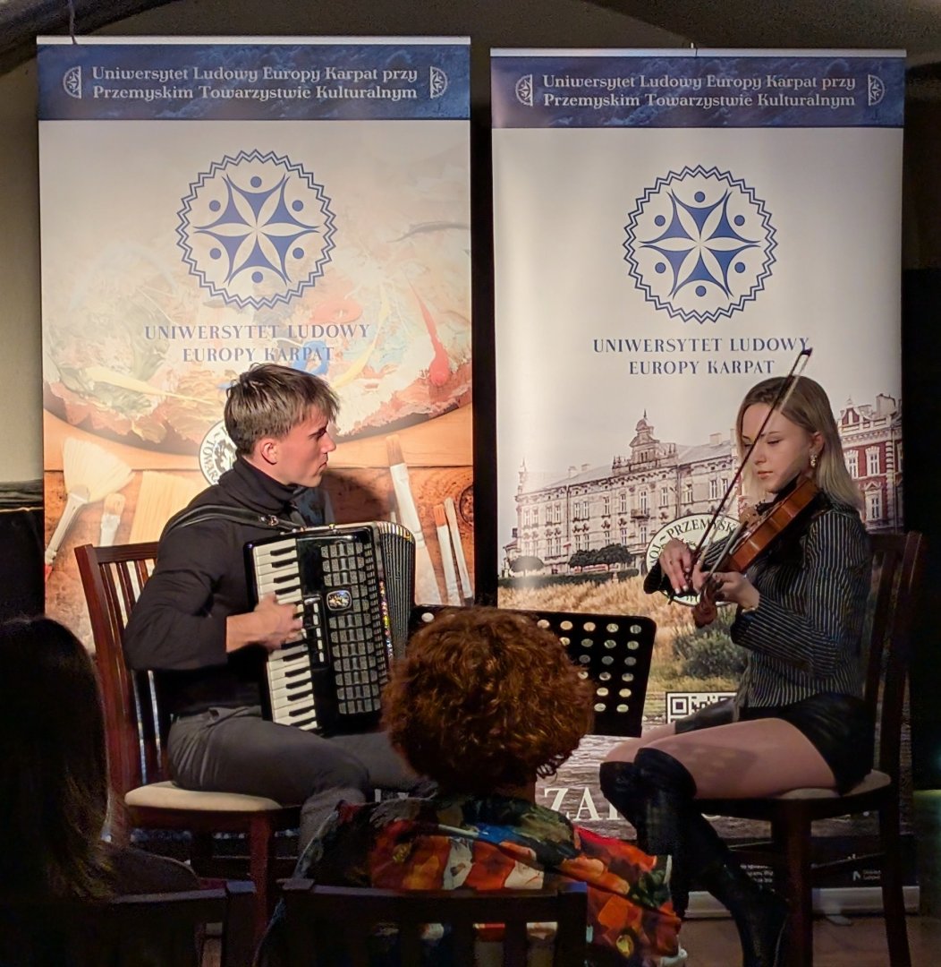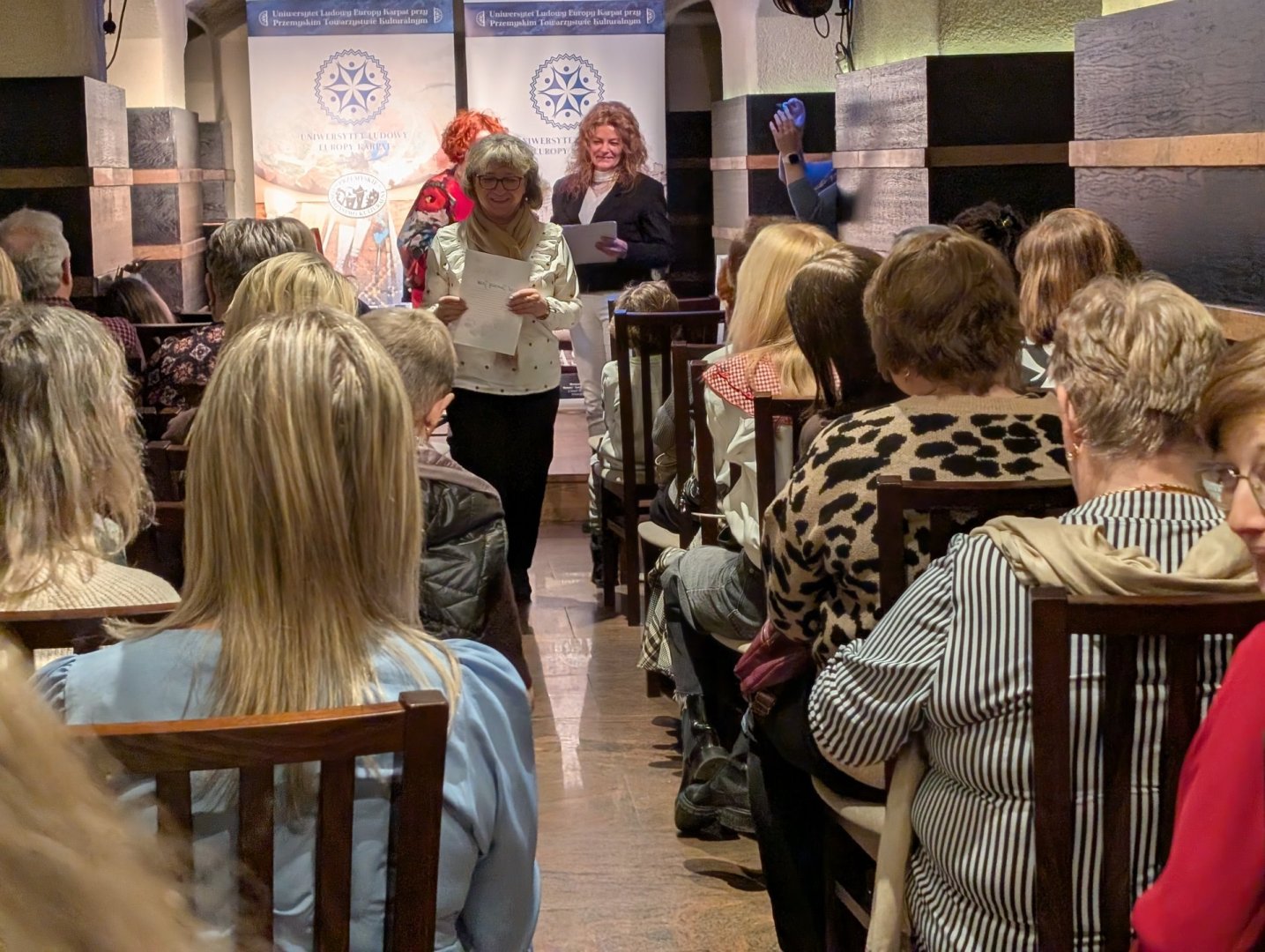 6 grudnia 2025 roku w świątecznej atmosferze Mikołajek, w Klubie „Piwnice” Centrum Kulturalnego w Przemyślu odbyło się uroczyste zakończenie dwóch długoterminowych kursów prowadzonych przez Uniwersytet Ludowy Europy Karpat: kursu plastycznego oraz kursu rękodzieła artystycznego. Spotkaniu towarzyszyła wystawa prac uczestników, którzy przez kilka miesięcy rozwijali swoje umiejętności pod okiem doświadczonych instruktorów. W przestrzeni klubu zaprezentowano ceramikę, kompozycje z bibuły, hafty, malowanie na tkaninach i szkle, a także liczne prace powstałe podczas zajęć akwarelowych i plenerowych. Całość ukazywała różnorodność technik i indywidualność twórców, a także ogromne znaczenie, jakie ma pielęgnowanie tradycji i rozwijanie kreatywności w lokalnej społeczności.