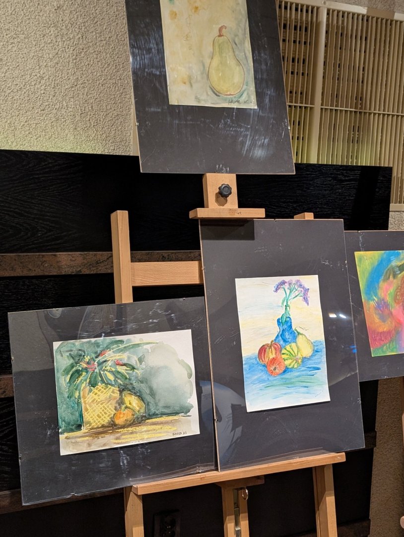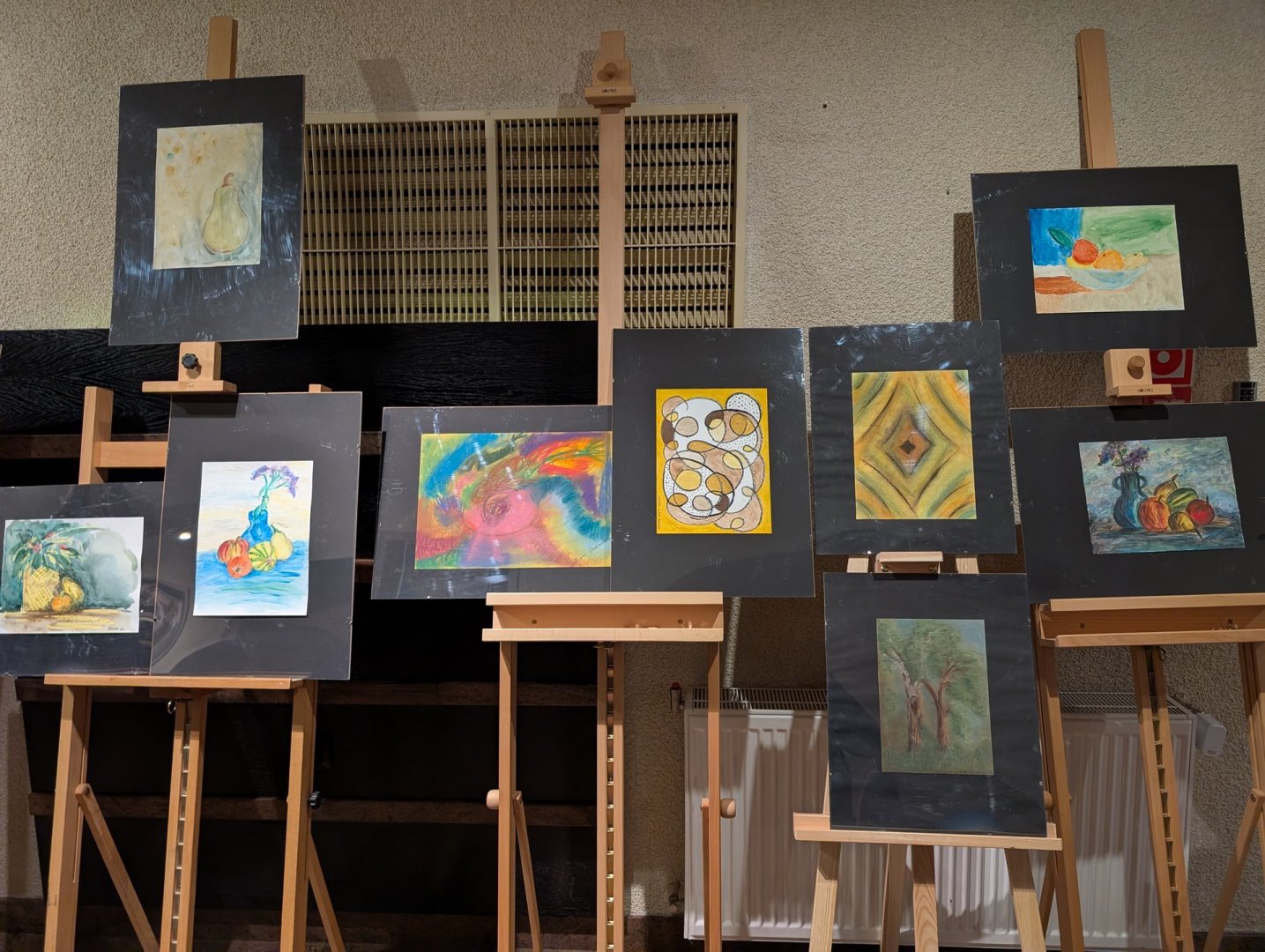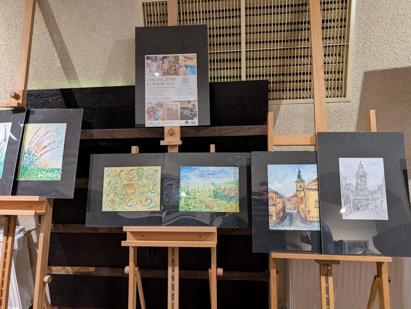 Kurs plastyczny, odbywający się od lipca do listopada, również miał charakter wieloetapowy. Pod opieką Małgorzaty Kusz uczestnicy zgłębiali tajniki malarstwa akwarelowego, tworząc pierwsze prace inspirowane światłem, kolorem i impresjonizmem. Podczas plenerów w Błażowej, Przemyślu i Jarosławiu uczyli się kompozycji, patrzenia na przestrzeń i poszukiwania harmonii w naturze. Kolejne zajęcia poświęcone były obserwacji światła i cienia w krajobrazie, rysowaniu zieleni oraz pracy nad realistycznym przedstawieniem przestrzeni. W październiku uczestnicy realizowali temat martwej natury, inspirując się zarówno klasycznymi przykładami, jak i współczesnymi interpretacjami. Listopadowe spotkanie służyło przygotowaniom do wystawy finałowej, która stała się ukoronowaniem kilku miesięcy twórczej pracy.