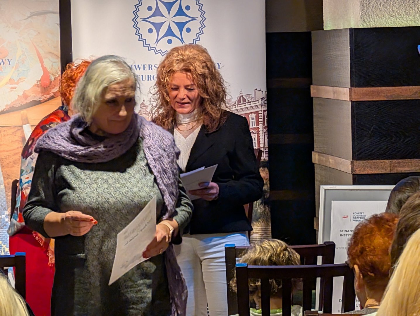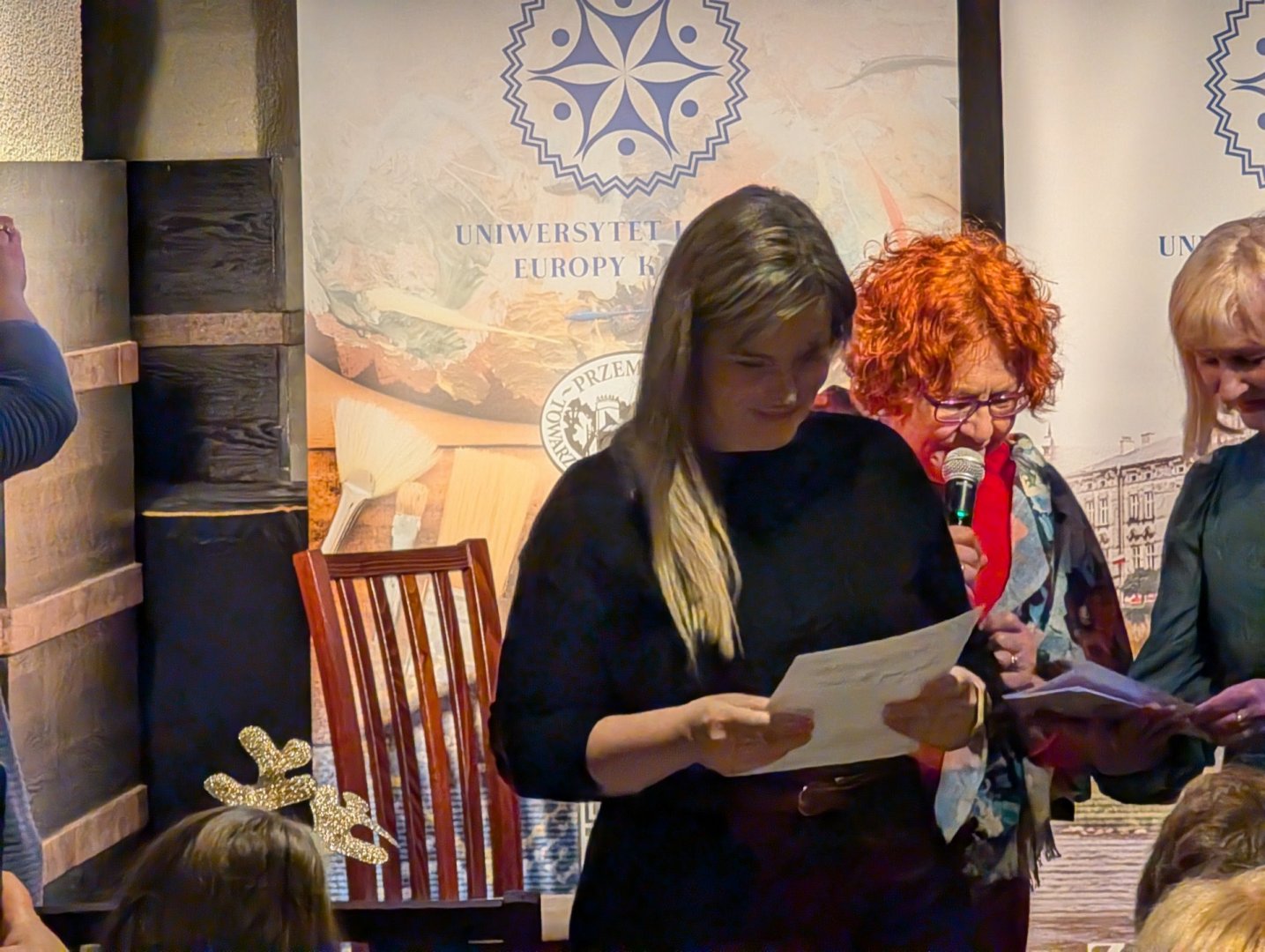 Serdeczne podziękowania skierowano do prowadzących zajęcia: Elżbiety Dykas za twórcze spotkania poświęcone bibułkarstwu, haftowi oraz malowaniu na tkaninach i szkle oraz Małgorzaty Kusz za profesjonalne, inspirujące prowadzenie kursu plastycznego. Podkreślono również wkład Marii Mazur-Krysztanowskiej, która prowadziła zajęcia z ceramiki i przybliżyła uczestnikom pradziejową ceramikę karpacką. Wyrazy wdzięczności złożono także Łukaszowi Zagrobelnemu, Dyrektorowi Centrum Kulturalnego, za współorganizację wydarzenia i udostępnienie przestrzeni, Agacie Hemon, Kierownik Działu Dziedzictwa i Edukacji Kulturowej, za współpracę i koordynację, a także Milenie Gorczycy i Filipowi Tomaszewskiemu, którzy swoim występem muzycznym na skrzypcach i akordeonie nadali wydarzeniu wyjątkowy, świąteczny klimat. Uczestnicy otrzymali pisemne podziękowania, a przy wspólnym poczęstunku panowała serdeczna i nastrojowa atmosfera.