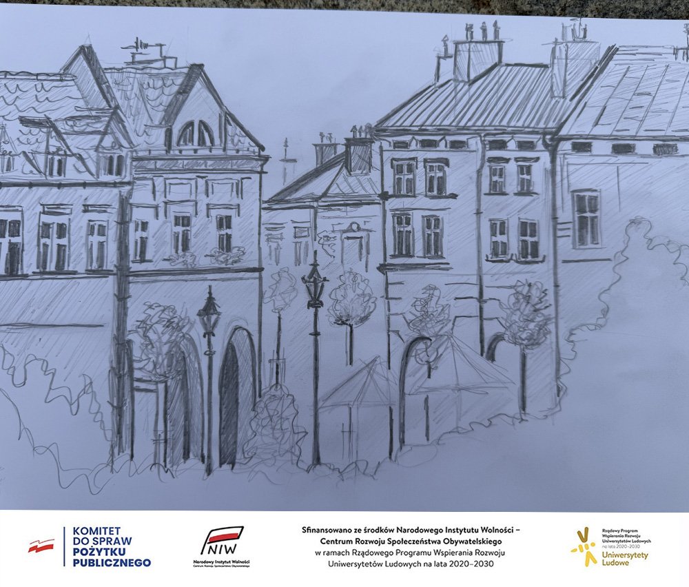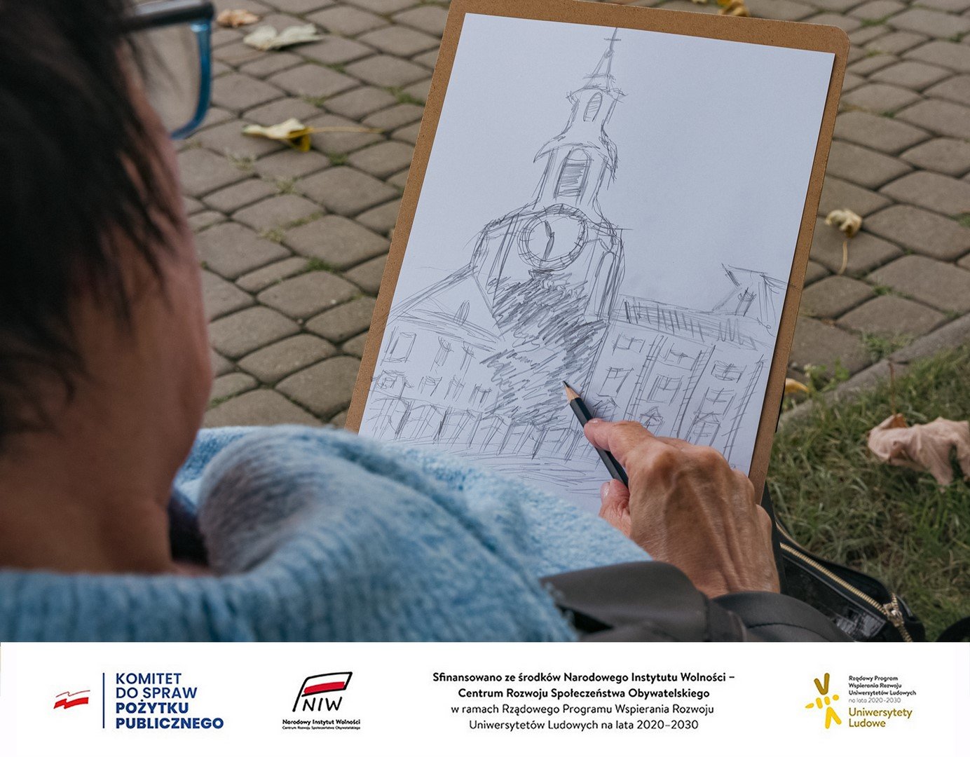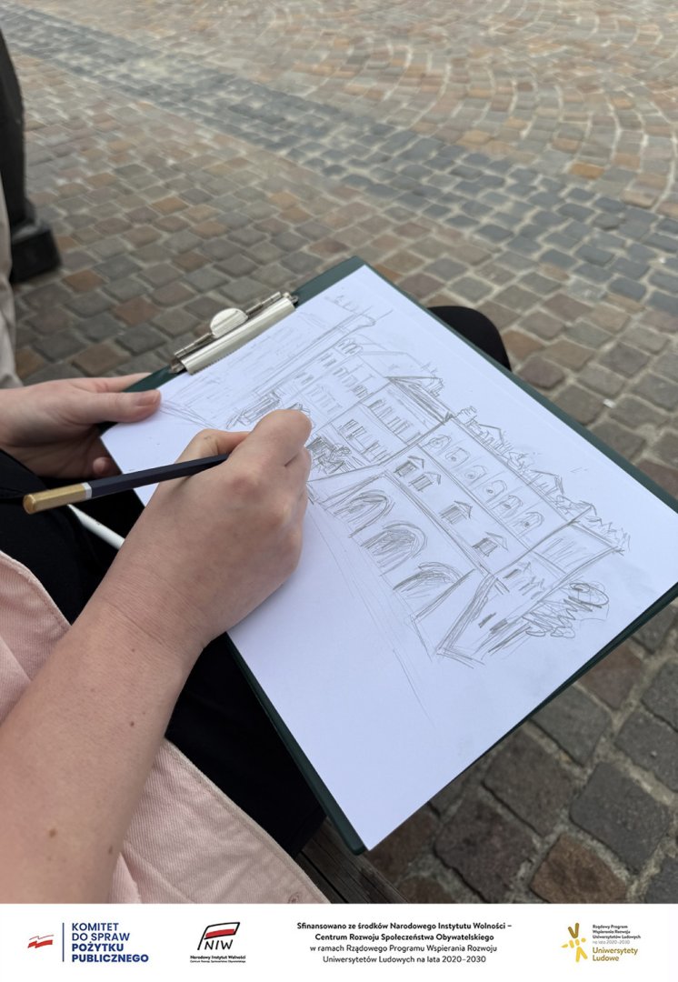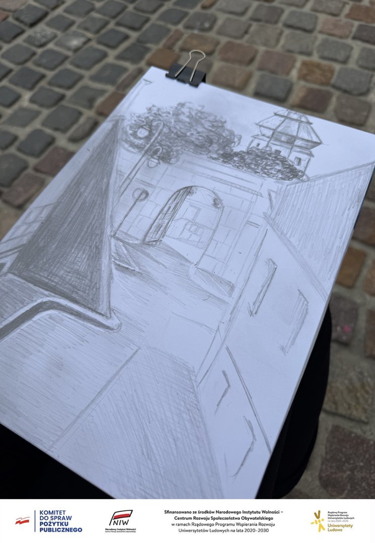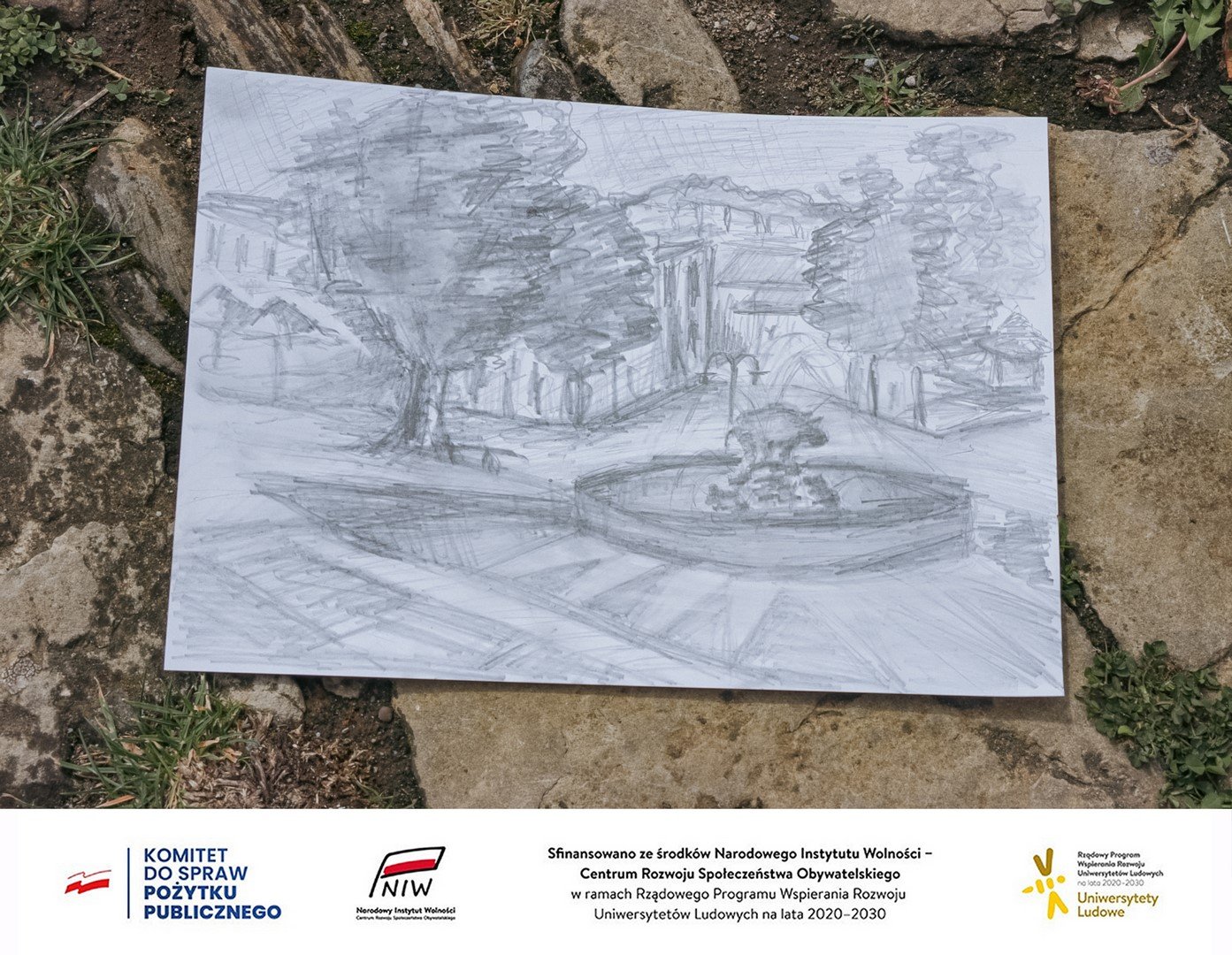 Zadaniem uczestników było nie tylko uchwycenie obserwowanych zjawisk w szkicach i notatkach, ale też zrozumienie, jak kompozycja wpływa na odbiór pejzażu i jak można świadomie z niej korzystać w pracy twórczej.