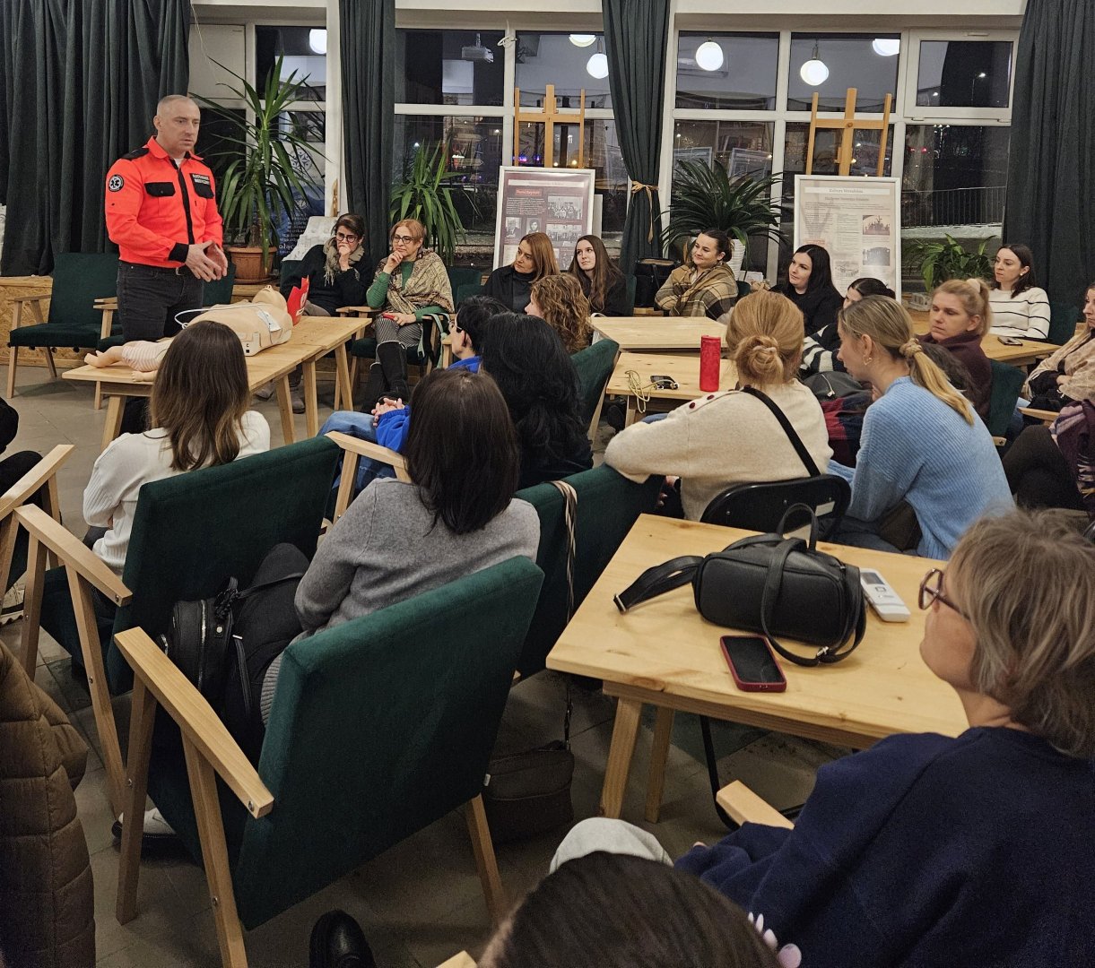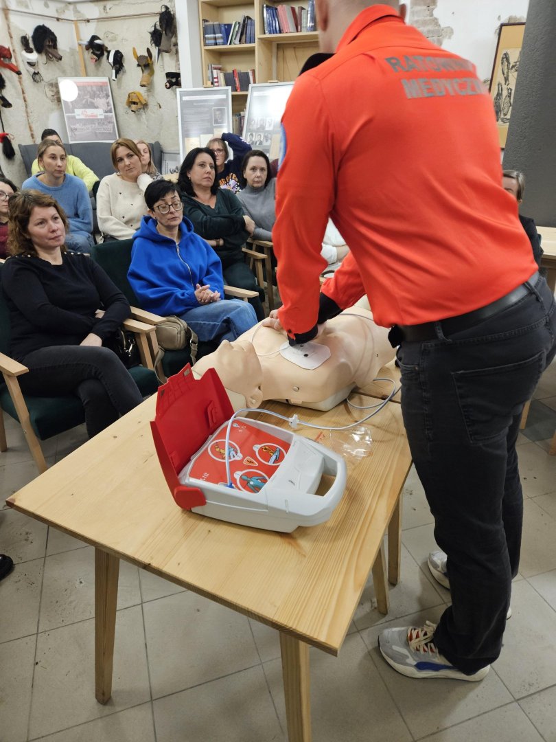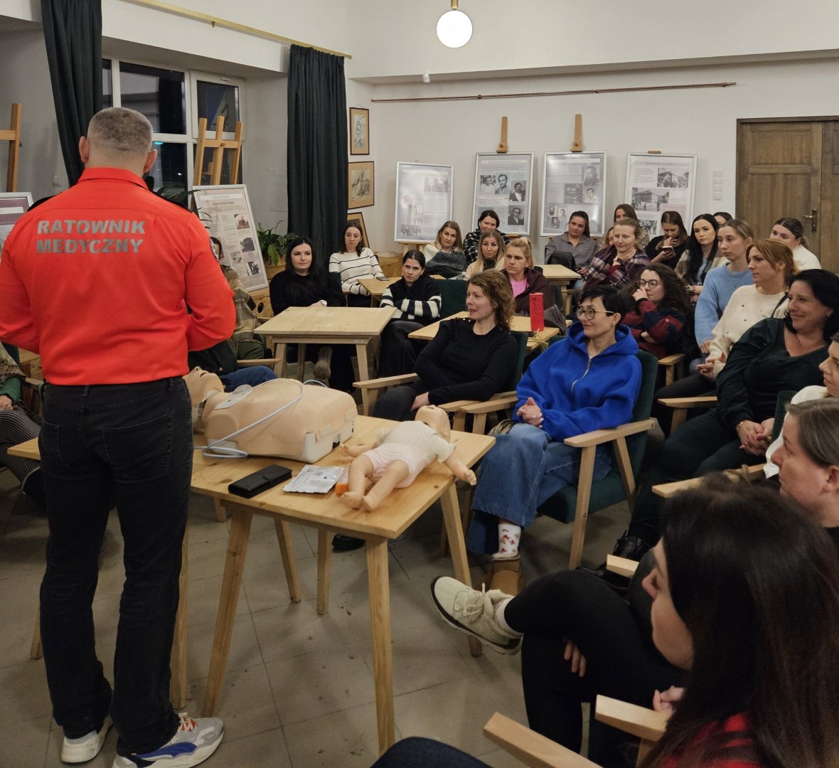 Podczas zajęć uczestnicy zdobyli wiedzę i praktyczne umiejętności reagowania w stanach zagrożenia zdrowia i życia – zarówno u osób dorosłych, jak i dzieci. Ćwiczono podstawowe czynności resuscytacyjne (BLS AED), rozpoznawanie stanów nagłych oraz prawidłowe wzywanie pomocy.