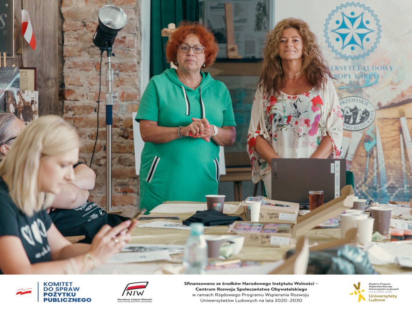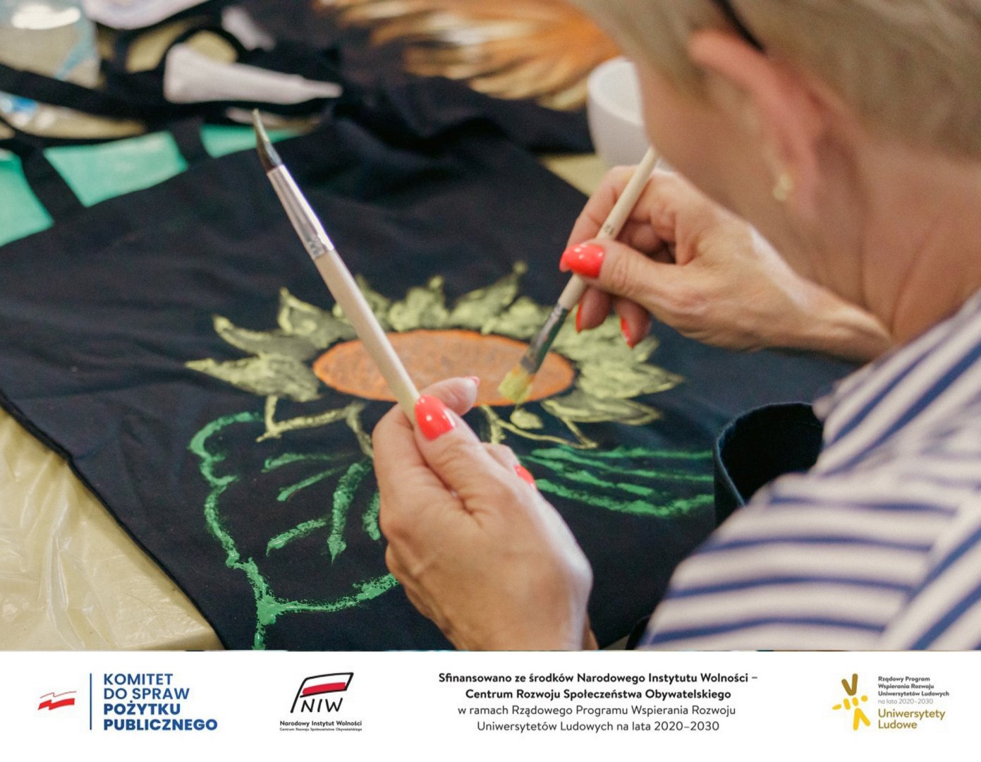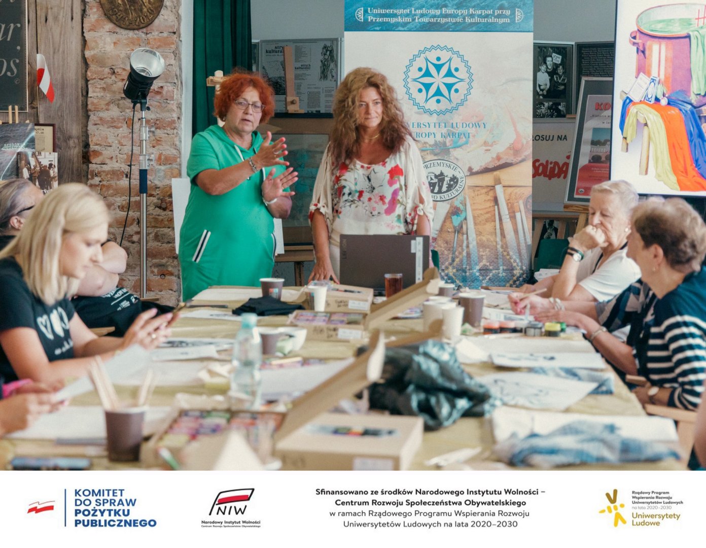 W dniu 4 lipca 2025 roku odbyły się kolejne zajęcia w ramach kursu rękodzieła organizowanego przez Uniwersytet Ludowy Europy Karpat przy Przemyskim Towarzystwie Kulturalnym. Warsztaty prowadziła Elżbieta Dykas, pasjonatka rękodzieła artystycznego i sztuki ludowej, która zapoznała uczestników z tematem podkarpackich kwiatów i technikami malowania na tkaninach.