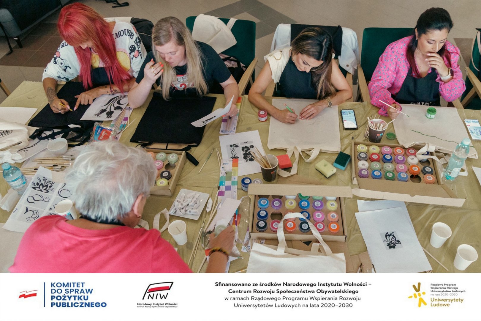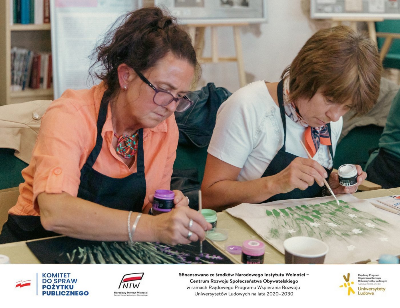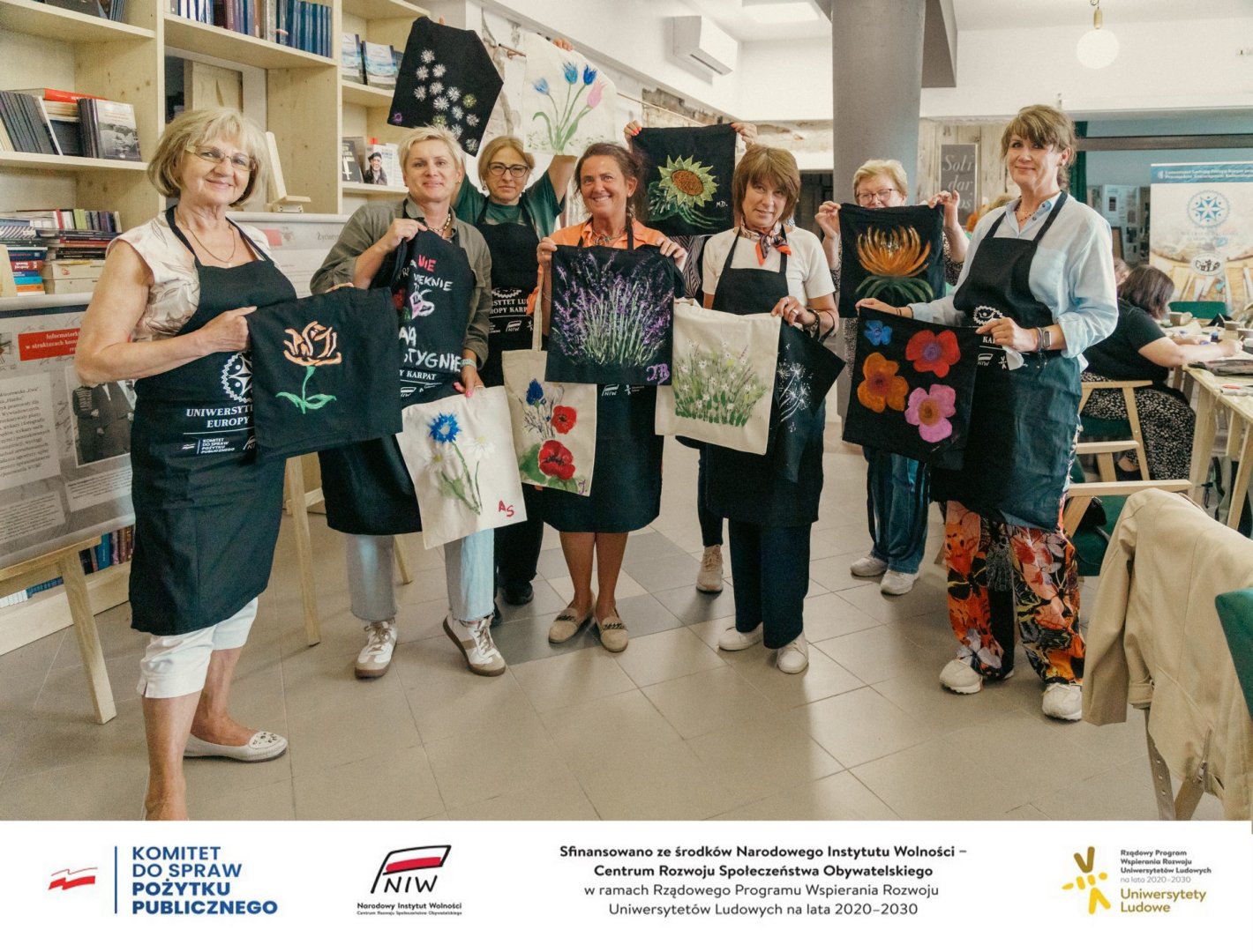 W dniu 4 lipca 2025 roku odbyły się kolejne zajęcia w ramach kursu rękodzieła organizowanego przez Uniwersytet Ludowy Europy Karpat przy Przemyskim Towarzystwie Kulturalnym. Warsztaty prowadziła Elżbieta Dykas, pasjonatka rękodzieła artystycznego i sztuki ludowej, która zapoznała uczestników z tematem podkarpackich kwiatów i technikami malowania na tkaninach.