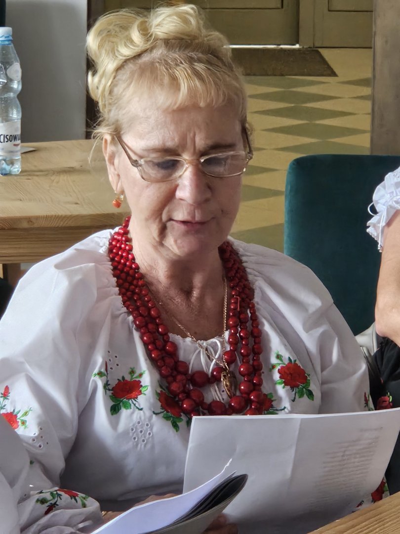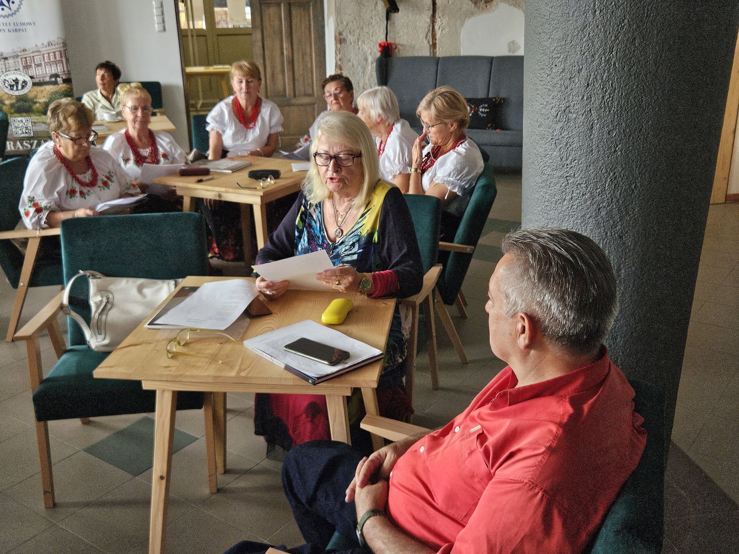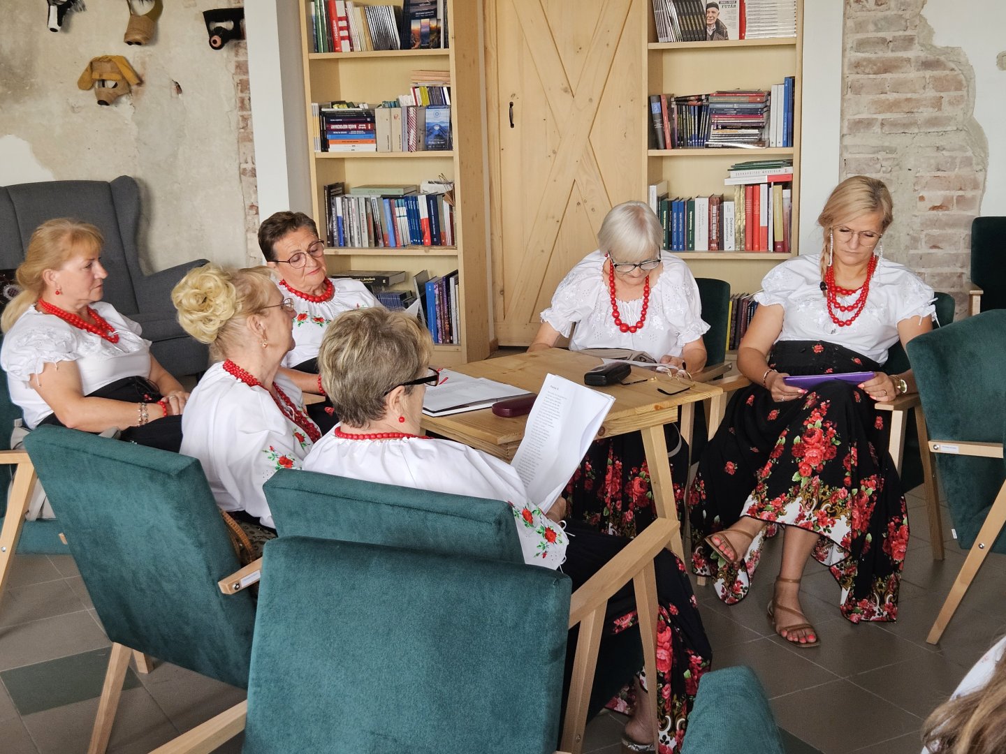 Szczególnym punktem programu było czytanie przygotowane przez Panie z Koła Gospodyń Wiejskich z Fredropola, które – ubrane w tradycyjne stroje ludowe – zaprezentowały fragmenty „Pieśni świętojańskiej o Sobótce”. Każda z Pań wcieliła się w inną Pannę, odczytując przypisane jej partie utworu. Ich czytanie przeniosło nas w świat dawnych obrzędów, słowiańskiej duchowości i ludowej poetyki, a jednocześnie ukazał, jak głęboko zakorzenione w kulturze są motywy poruszane przez Kochanowskiego.