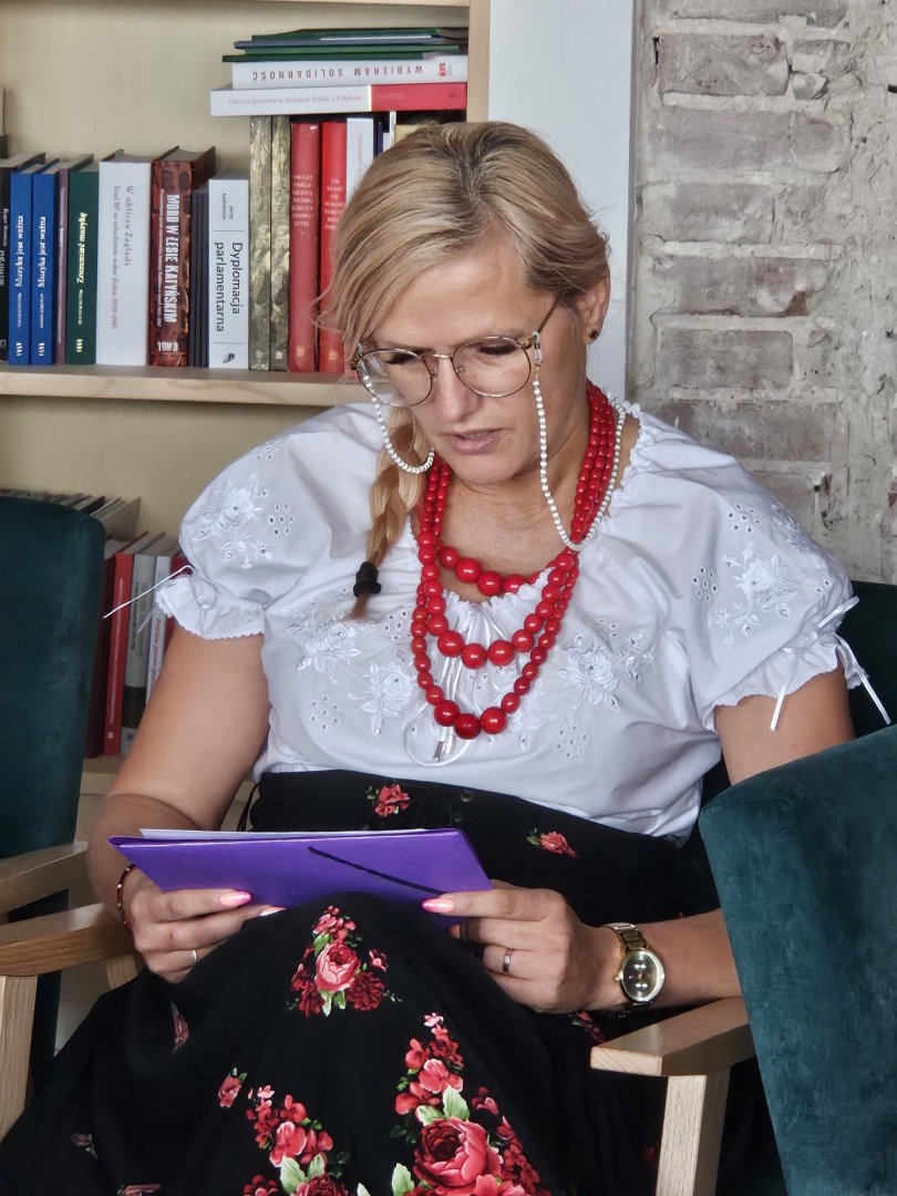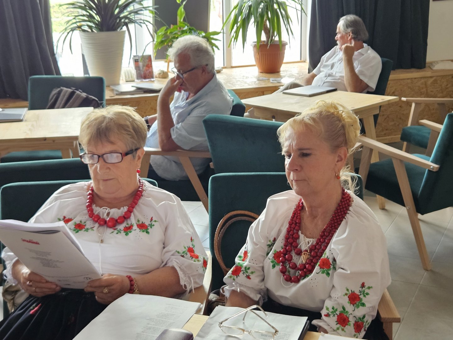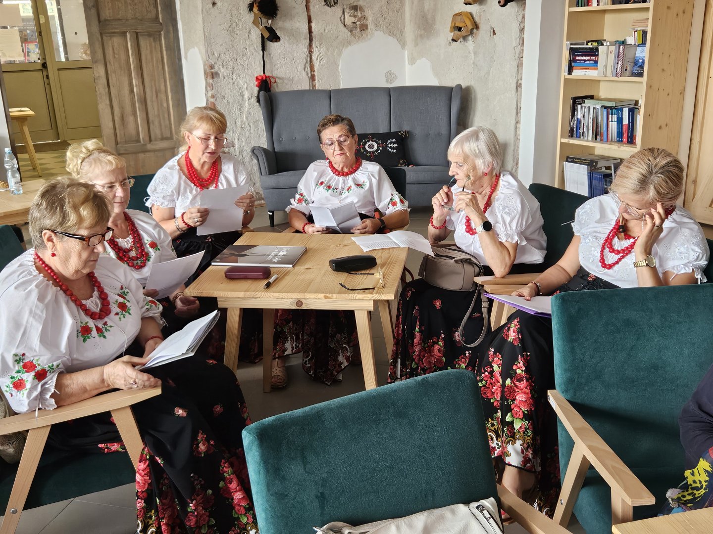 Szczególnym punktem programu było czytanie przygotowane przez Panie z Koła Gospodyń Wiejskich z Fredropola, które – ubrane w tradycyjne stroje ludowe – zaprezentowały fragmenty „Pieśni świętojańskiej o Sobótce”. Każda z Pań wcieliła się w inną Pannę, odczytując przypisane jej partie utworu. Ich czytanie przeniosło nas w świat dawnych obrzędów, słowiańskiej duchowości i ludowej poetyki, a jednocześnie ukazał, jak głęboko zakorzenione w kulturze są motywy poruszane przez Kochanowskiego.