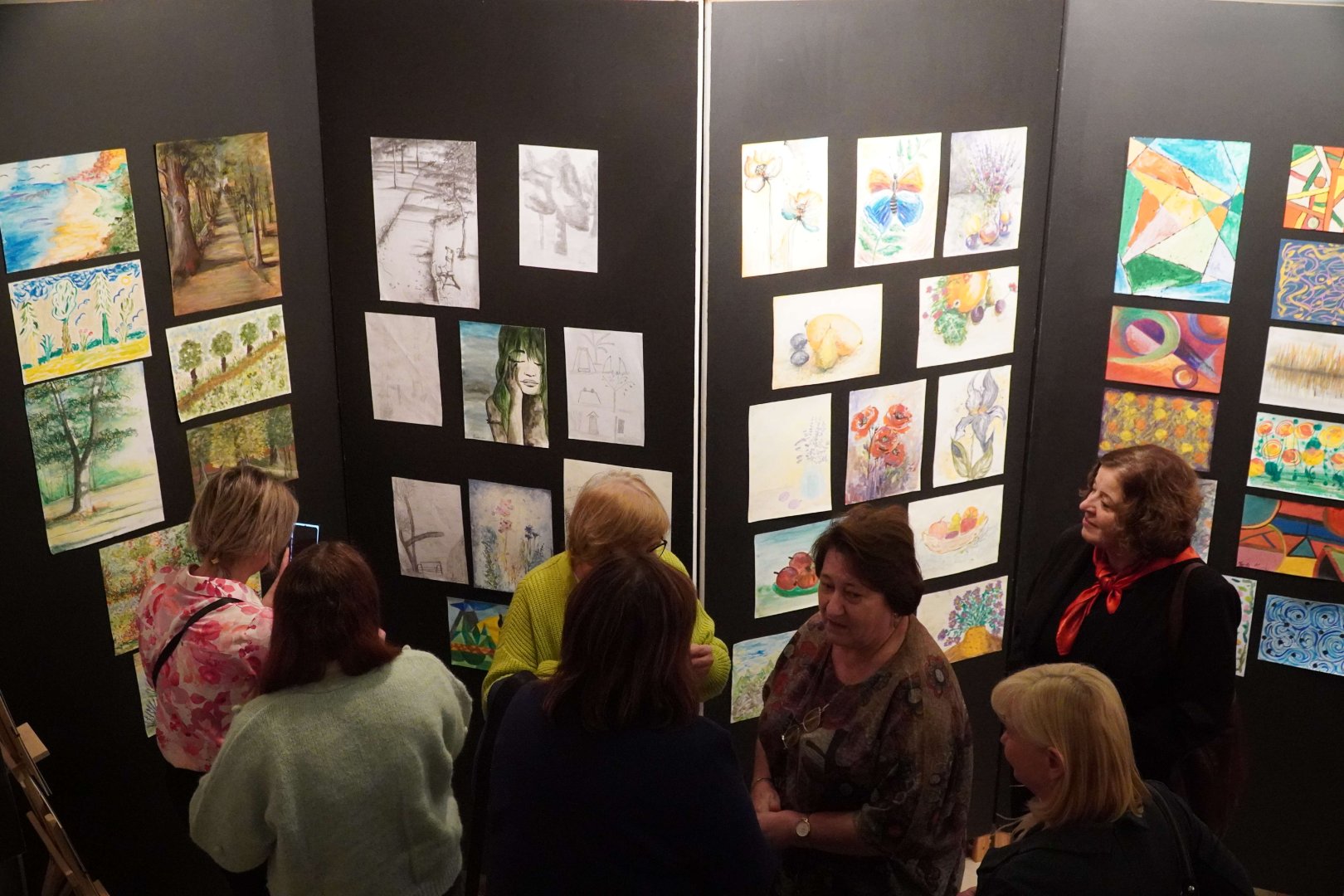 Pod kierunkiem Małgorzaty Kusz uczestnicy rozwijali swoje umiejętności, poznawali różnorodne techniki plastyczne i realizowali indywidualne projekty. Efekty ich pracy mogliśmy podziwiać podczas wernisażu — każda praca odzwierciedlała osobisty styl i pomysłowość twórców.